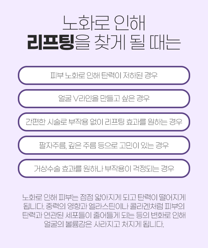 ㅁ 간편한 시술을 통해 부작용 없이 리프팅이 되길 원합니다.