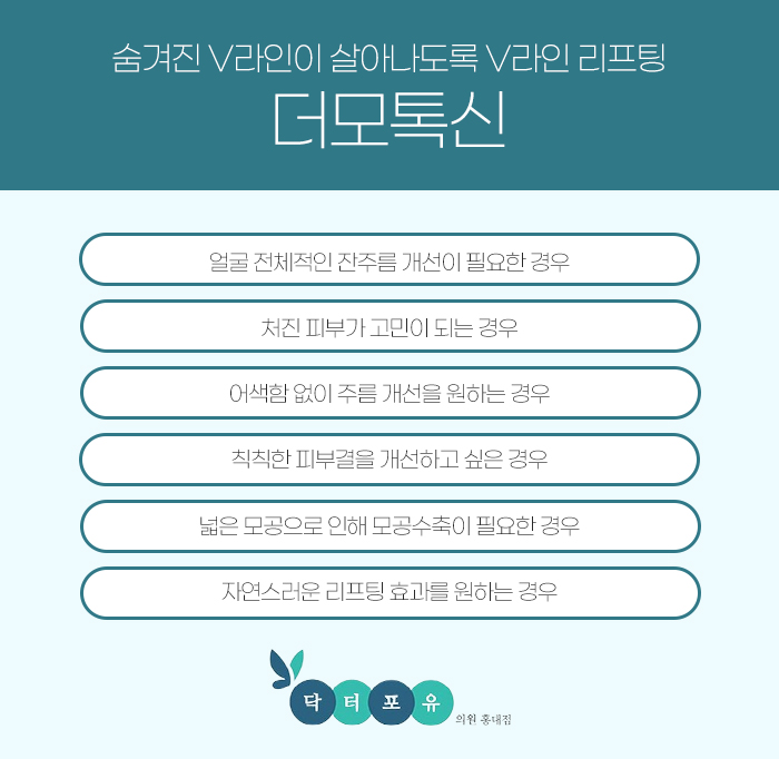 이러한 용산 보톡스 더모톡신은 얼굴에 전체적인 잔주름 개선이 필요하거나 처진 피부 때문에 고민이 되고 있는 경우, 어색함 없이 자연스럽게 주름이 개선되길 원하는 경우, 칙칙한 피부결을 개선하는데 도움을 받고 싶은 경우, 넓어진 모공으로 인해 모공을 수축하길 원하는 경우, 자연스럽게 리프팅이 되길 원하는 경우에 적합하답니다.