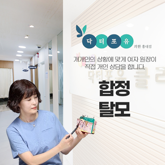 그러니 합정 탈모 때문에 고생을 하고 계시다면 이제 닥터포유의원으로 내원하셔서 자세히 진단을 받아보시기 바라는데요. 내원해 주실 경우 환자분의 두피 상태와 모발 상태에 맞게, 또 탈모를 앓게 된 원인과 앓고 있는 탈모의 종류에 맞게 자신에게 적합한 방법으로 관리 및 치료를 하는데 도움을 받아보실 수 있답니다.