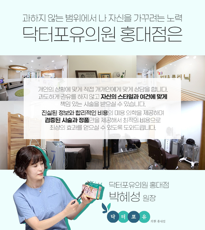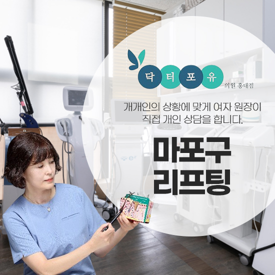 그 외에도 다양한 마포구 리프팅 방법이 있는데요. 그러니 피부가 처지고 탄력을 잃은 것이 느껴진다면 닥터포유의원을 찾아주시기 바라겠습니다. 내원 시 과하지 않는 범위 내에서 환자분의 스타일과 여건에 맞게 시술을 진행하고 있기 때문에 꾸준히 찾아주시는 분들이 많답니다.