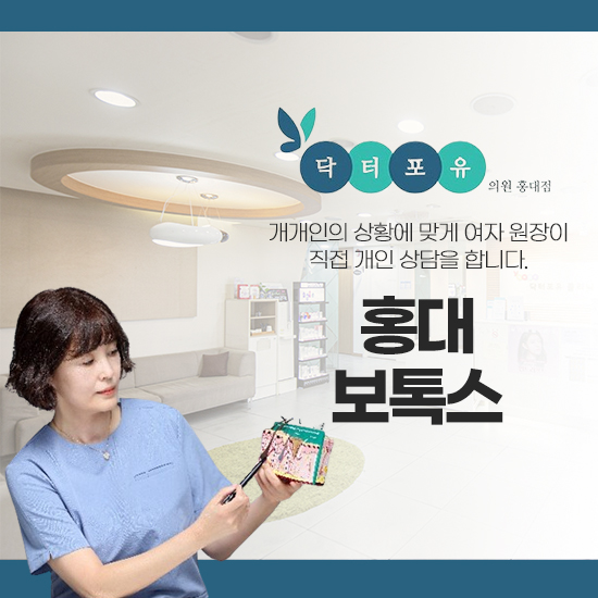 안녕하신가요. 닥터포유의원입니다. 현재 홍대 보톡스 시술을 받기 위해서 닥터포유의원으로 발걸음을 옮겨주시는 분들이 많은데요. 이렇게 홍대 보톡스 시술을 받을 때는 어느 곳에서 받는 것이 좋을지 고민을 하시는 분들이 많습니다.