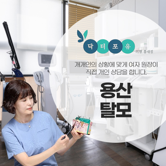 그러니 잘 낫지 않아 걱정이 되는 용산 탈모 때문에 고민이 많으시다면 이제 닥터포유의원과 함께하셔서 두피 건강과 모발 건강을 회복하는데 도움을 받아보시기 바라겠습니다.